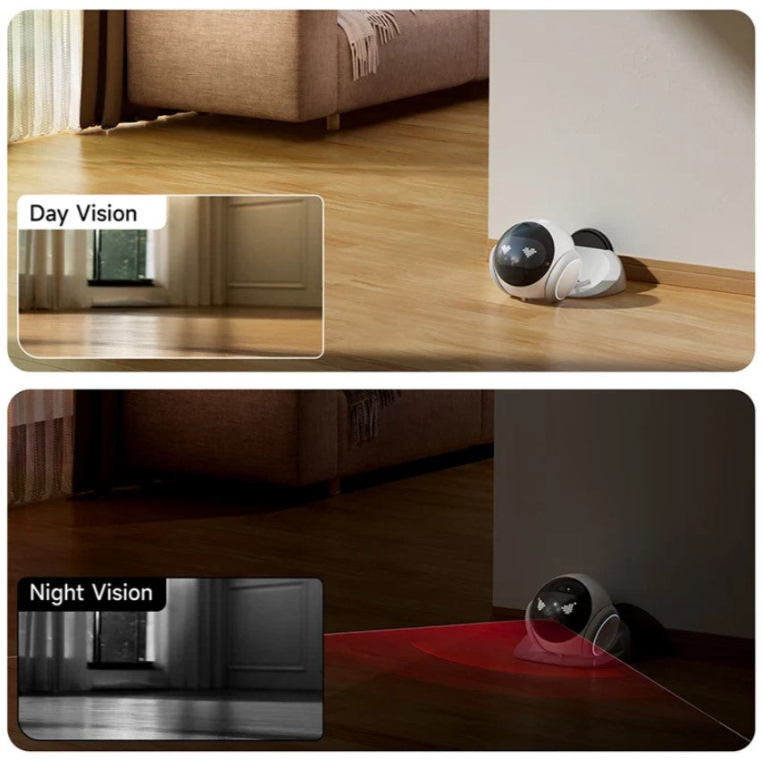 This robot is equipped with two distinct lenses to provide comprehensive coverage. It features a fixed-point monitoring lens for a steady view of a specific area, and a pan-tilt monitoring lens that can move to look around. This allows you to capture more details of the scene simultaneously.